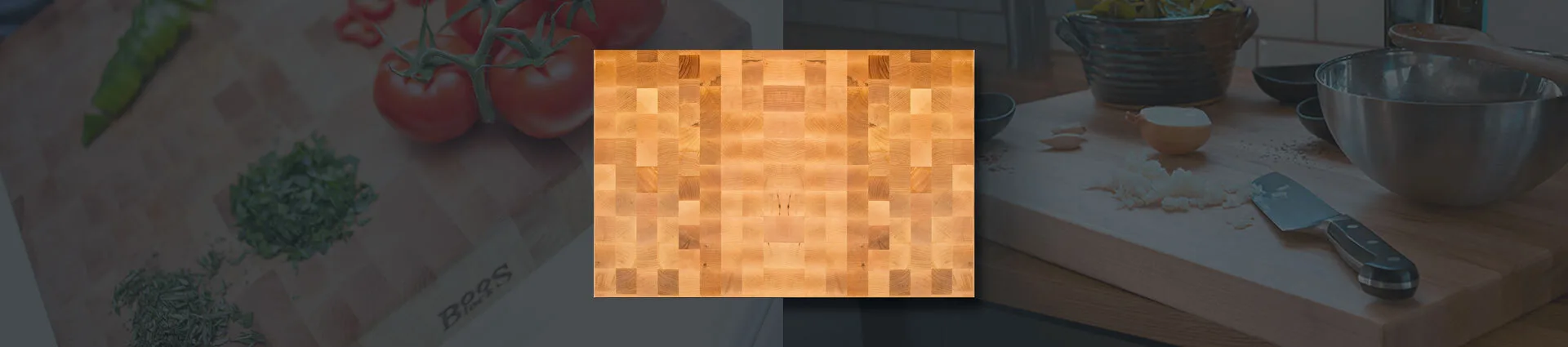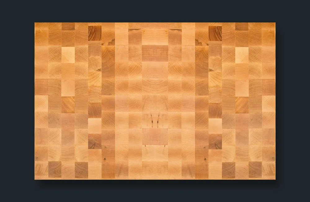 Stirnholzplatten werden aus einzelnen Holzblöcken hergestellt, die vertikal, Ecke an Ecke, verleimt werden, um maximale Stärke und Langlebigkeit zu gewährleisten. Die massiven Stirnholzblöcke, die oft als Original-Butcher Block bezeichnet werden, waren vor allem in den Metzgereien von früher sehr beliebt. Heute verwenden wir die Stirnholzkonstruktion am häufigsten für Butcher Blocks, Küchenarbeitsplatten und -inseln sowie für kleinere Hackblöcke in Schneidebrettgröße.